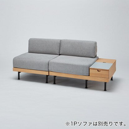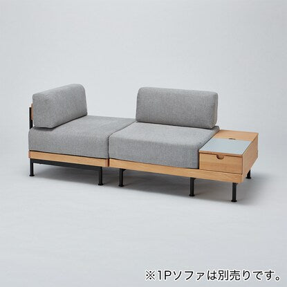 テーブル部分は手前に引き出し、奥にふた式の2つの収納がついています。ソファの左右どちらに設置することもできます。