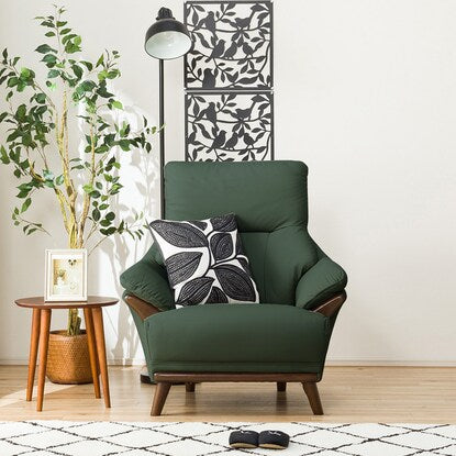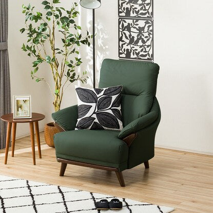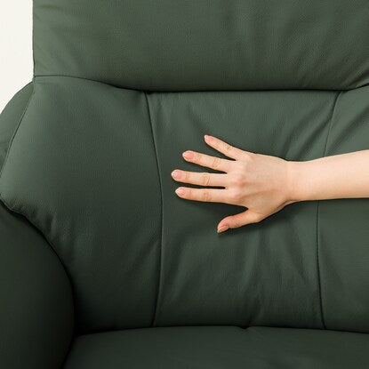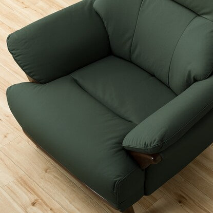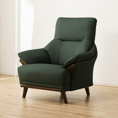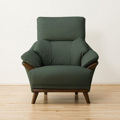 ※画像はグリーンカラーを使用しています。 包み込むようなハイバックの背もたれと木目が美しいタモ材のフレーム。 風格のあるデザインでお部屋の雰囲気をワンランクアップします。ハイバックな背もたれでしっかりと、柔らかく頭ホールド。背から肘までぐるりと囲むような形状で、ゆったりと体をもたれることができます。座面に4層のバージンウレタンを使用し、へたりにくく、快適な座り心地です。モダンな脚付きのデザインで床からの高さも充分にあり、ロボットクリーナーにも対応。 ※一部機種は除きます。こちらは1人用ソファです。【詳細サイズ(約)】 背もたれの高さ:60cm 脚高:13cm【表面素材とお手入れ方法】 ■天然皮革(革) (肌に馴染みやすく、柔軟性、耐久性吸湿性、通気性に富んでいます。 又温度差による品質の変化が少なく 、耐寒性に優れています。 天然素材のため、手入れを怠ると角質化がおこり革の劣化を引き起こしますが、 しっかりお手入れいただくと、長く革本来の風合いをお楽しみいただけるものです。)お手入れ方法 (別売の専用のクリーナーでのお手入れが必要。革は油分を失うとひび割れ(角質化)が起こりやすくなるため、 4 -5ヶ月に1度はクリーナーでのお手入れが必要になります。)■合成皮革…側面・裏面などに使用。 (主にPVC(塩化ビニールレザー),PU(ポリウレタン),ソフトレザ-を指します。水、汚れに強く、価格が安い事も大きな特徴です。 ソフトレザ-においては柔軟性と耐久性を革に近づけています。) (汚れたら水拭きも簡単に行えるため、手軽にお手入れできます。表面が汚れた際には、中性洗剤を使うときれいになります。)お手入れ方法 (汚れたら水拭きも簡単に行えるため、手軽にお手入れできます。表面が汚れた際には、中性洗剤を使うときれいになります。)【座面スプリングと特長】 S型スプリング (S字状に波打たせたバネを並列にアーチ上に配したもので、最も一般的なスプリングです。)【納品間口サイズ】 70cm以上