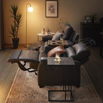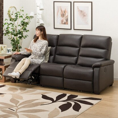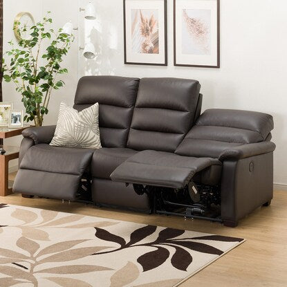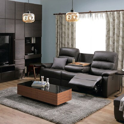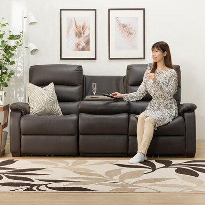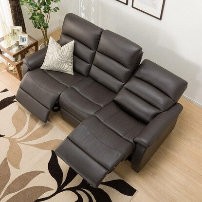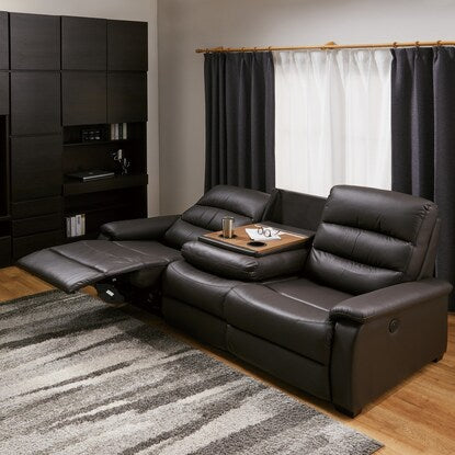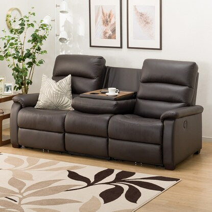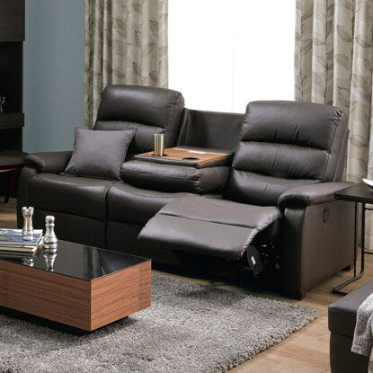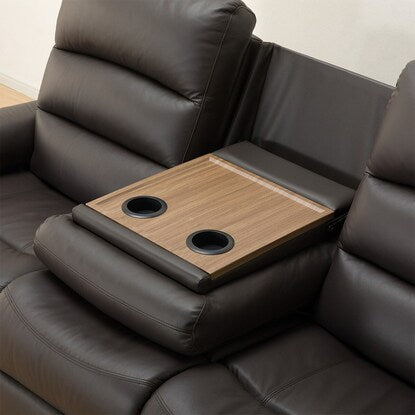 3人掛け電動テーブル付きリクライニングソファ(Nビリーバ2革DBR)
