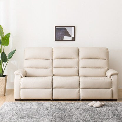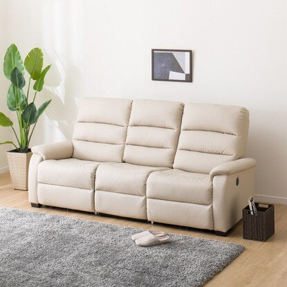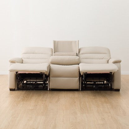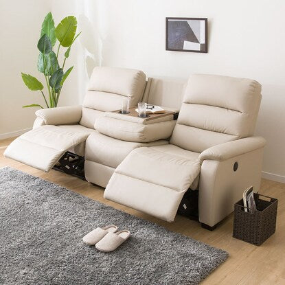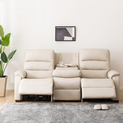 傷・汚れに強い合成皮革 3人掛け電動合皮テーブル付きリクライニングソファ(Nビリーバ 抗ウイルスNシールドBE)