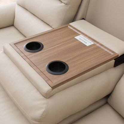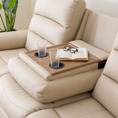 3人用ソファは、中央の座席を倒すとテーブルになり、飲み物やちょっとした小物を置くのに便利です。