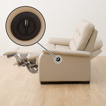 リクライニング操作は、側面の埋込み式ボタンで行え、コードやリモコンがないので見た目もスッキリ。力の要らないボタン操作のみで簡単にクライニングできます。