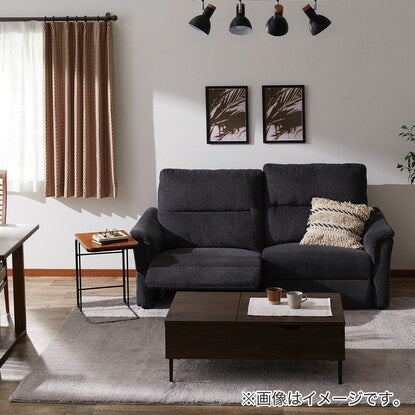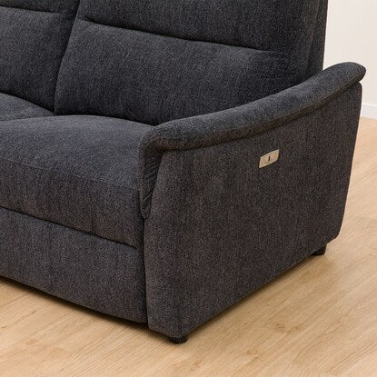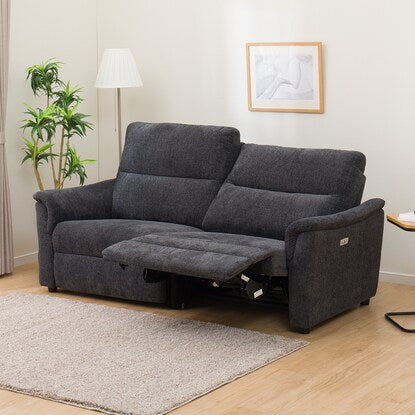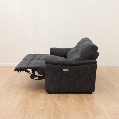 落ち着いたカラーでお部屋にやさしくなじむ、布張りの電動リクライニングソファです。