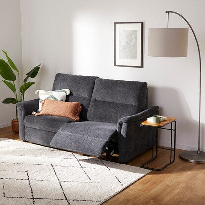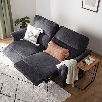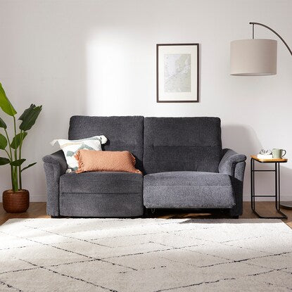 省スペースで設置できるコンパクトタイプの電動ソファ。2人で座っても左右それぞれお好きな角度でリクライニングできます。