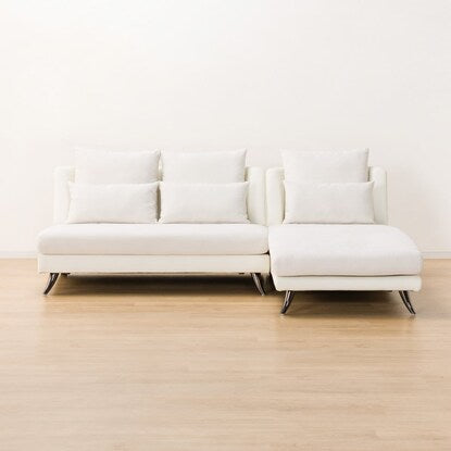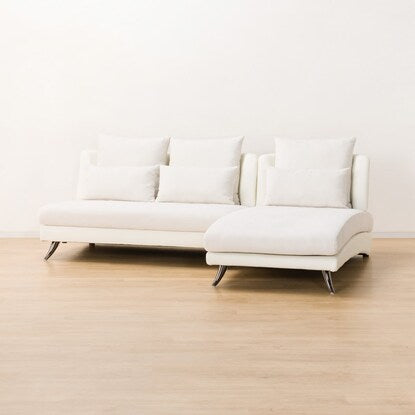 肘のない2人用ソファとシェーズロングソファの組み合わせ。