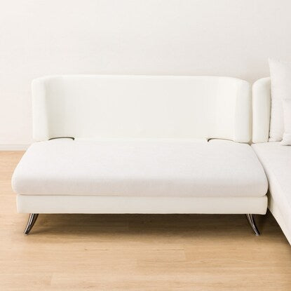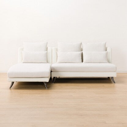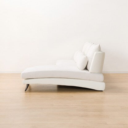 シェーズソファは足を伸ばすと足先が前に下がるデザインですので、お部屋に圧迫感を感じさせない視覚デザインです。