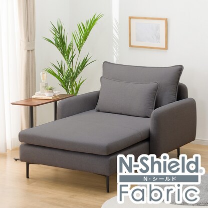 傷・汚れに強いファブリック 布張りシェーズソファ肘あり(MS01 NシールドAQ-MGY)