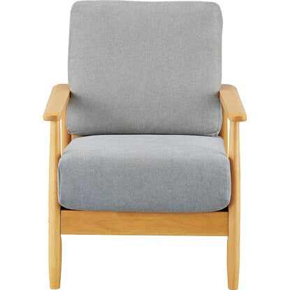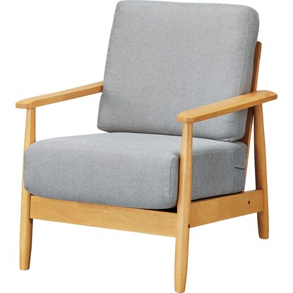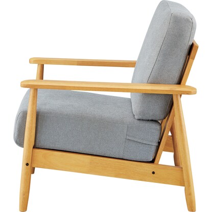 木製ヒジと、温もりのあるファブリック素材を使用したソファです。