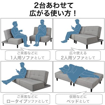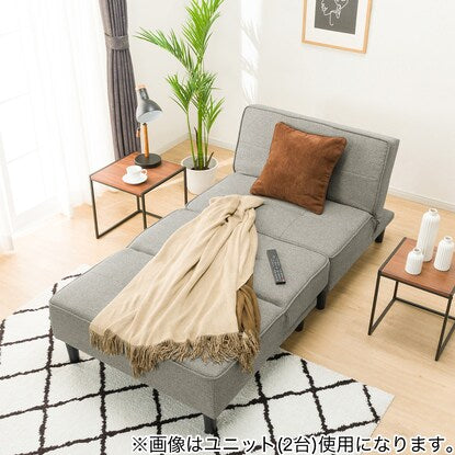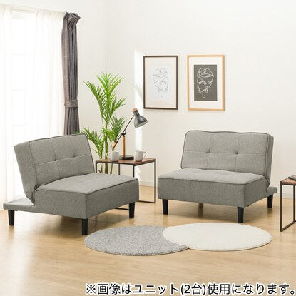 ライフスタイルに合わせて形をカスタマイズ。何通りもの使い方ができるリクライニングユニットソファ。 脚は取り外しができロータイプでも使用可能。 圧迫感がなく空間にも奥行きが感じられます。※こちらは1台の販売となります。ユニットを2台使用の場合、好きな形に組み合わせが出来るため、1人でも2人でも使用可能です。 2台並べてフラットにするとベッドになるので、急な来客用のベッドとしてもお使いいただけます。【表面素材とお手入れ方法】 布 (温かみがありコ-ディネ-トするには適しています。)お手入れ方法 (ゴミや汚れは掃除機で吸い取るか、柔らかなブラシを使ってください。 しつこい汚れには中性洗剤を薄めた液を浸した布を柔らかく絞り、叩くように汚れを落とします。 その後、洗剤が残らないように、水を絞った布でよくふき取ります。)
