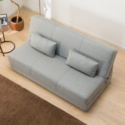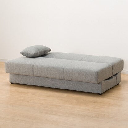 ※画像は【グレー】を使用しています。 「ソファ」と「ベッド」両方の機能を兼ね備えた便利なアイテムで、この1台で何通りもの使い方ができます。座面下のデッドスペースは収納スペースとして活かせるため、狭いお部屋や収納が少ないお部屋にもピッタリ。シンプルながら実用性が高く、シーンを問わずお使いいただけます。フラットにすることでベッドとしてご使用いただけます。お部屋のスペースが狭いワンルームや、急な来客用のベッドとしても優秀です。付属の背あてクッションを枕代わりにお使いいただけます。 座面下に大容量の収納スペースを設ける事で、デッドスペースの悩みを解決。限られたスペースを有効活用でき、お部屋の整理整頓に役立ちます。 肘当て・背当て・枕など、用途に応じて使える共生地のクッション2個付き。※イメージ画像の場合、使用している小物等は演出品です。 【表面素材とお手入れ方法】 ■布 温かみがありコ-ディネ-トするには適しています。■お手入れ方法 ゴミや汚れは掃除機で吸い取るか、柔らかなブラシを使ってください。しつこい汚れには中性洗剤を薄めた液を浸した布を柔らかく絞り、叩くように汚れを落とします。その後、洗剤が残らないように、水を絞った布でよくふき取ります。【座面スプリングと特長】 S型スプリング (S字状に波打たせたバネを並列にアーチ上に配したもので、最も一般的なスプリングです。)【納品間口サイズ】 50cm