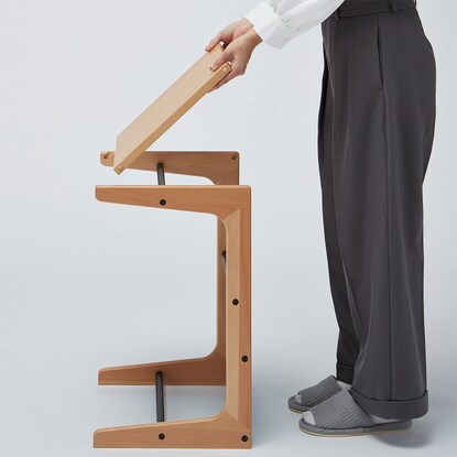 サイドテーブルとして使う場合は脚がコの字型になるので、使いやすい位置まで引き寄せて置くことができます。