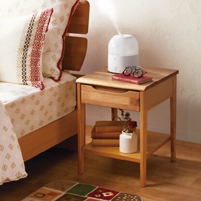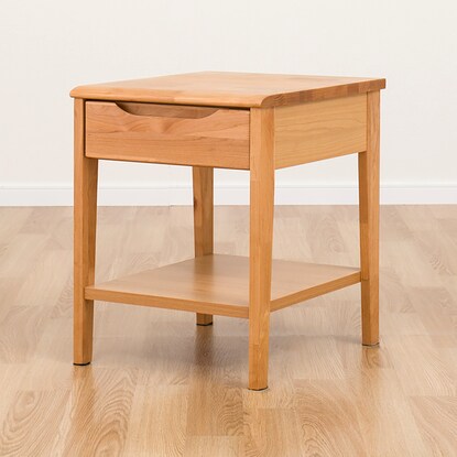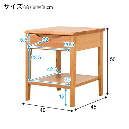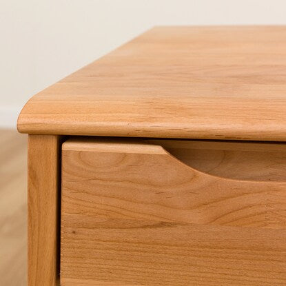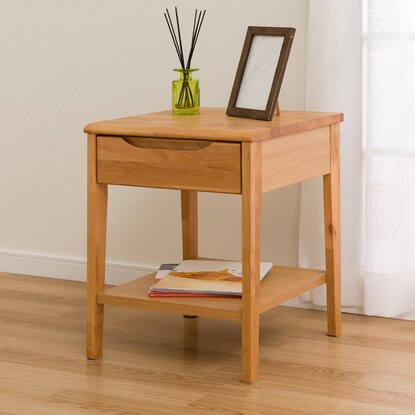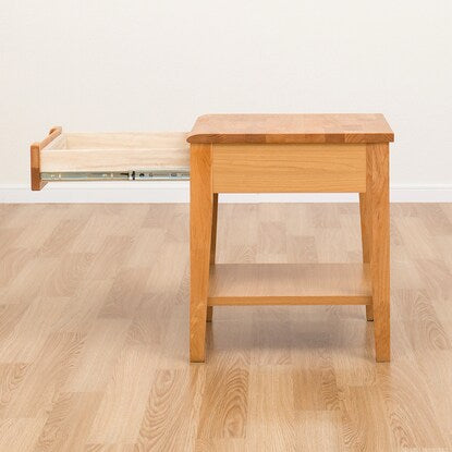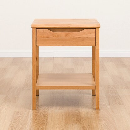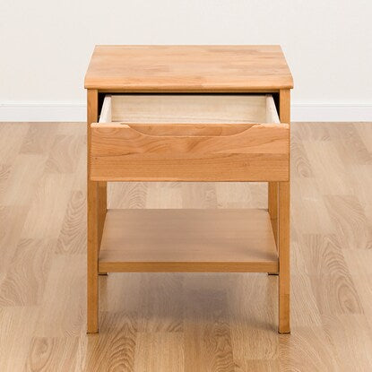 ソファサイド、ベッドサイド、その他場所を選ばず使用できる多目的テーブル。 シンプルなデザインとカラーなので、ナチュラルなコーディネートに溶け込みます。木目が美しく、やわらかな風合いが特長のアルダー無垢材を使用しています。 天然木材のため、木目・節目が1 点1点異なり、自分だけの表情が楽しめます。 小物整理ができる引出しは、スライドレール付きで開け閉めラクラク。