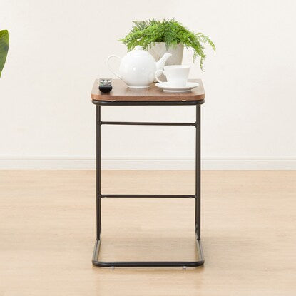 ソファやベッドサイドで差し込んで使えるコの字型のサイドテーブル。