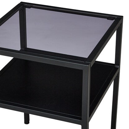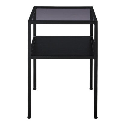 ガラス天板のシャープなデザインのサイドテーブル。 天板は丈夫で安心な強化ガラス、ヒートソーク、飛散防止フィルムのトライプロテクト構造。 表面の汚れは、サッと水拭きするだけなので、お手入れが簡単です。 棚板は傷がつきにくいメラミン化粧繊維板を使用しています。※イメージ画像の場合、使用している小物等は演出品です。