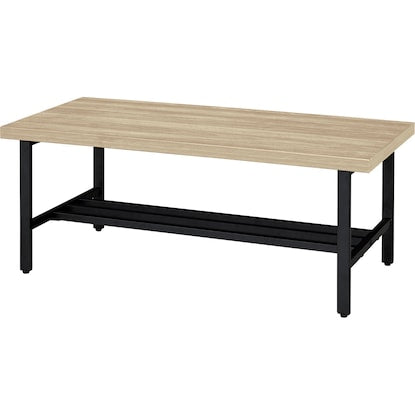 木目調の天板とブラックスチールの組み合わせがシンプルながらも存在感のあるサイドテーブル。足元に小物などを収納できる棚付きです。同シリーズのTT012とTT013のサイドテーブルとセンターテーブルを組み合わせて使うとネストテーブルとしても活用できます。