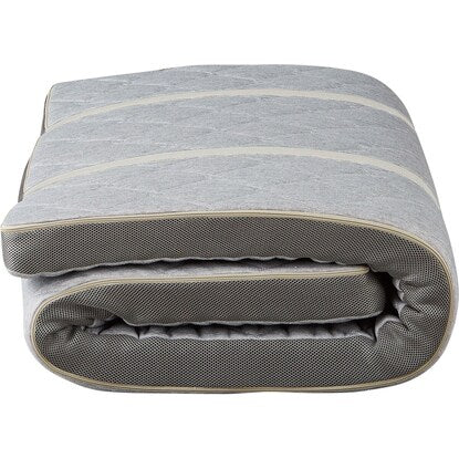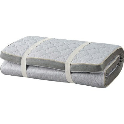 3つ折りでたたみ、収納しやすい固定ベルト付きです。