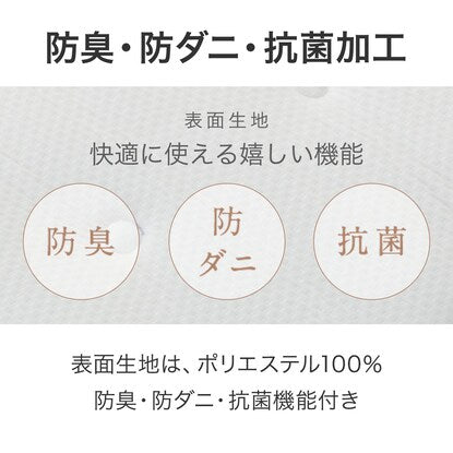 表面生地はポリエステル100%。防臭・防ダニ・抗菌機能付き。