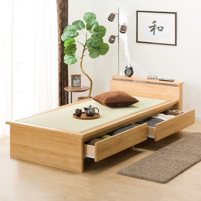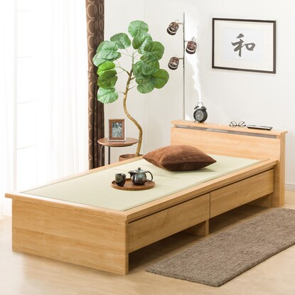 弾力性・吸放湿性・リラックス効果がある香りのよいいぐさ畳床板のベッド。畳床板は敷き布団の寝心地がお好みの方におすすめ。