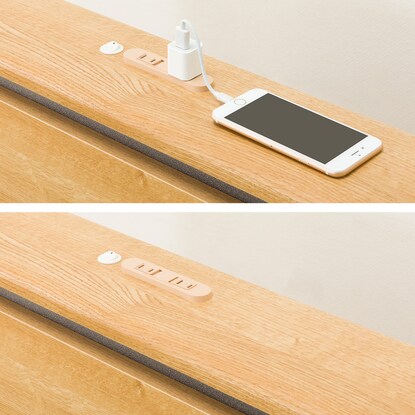 ヘッドボードにはスマホなどの充電に便利なコンセント2口付きです。