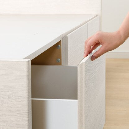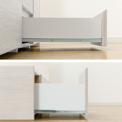引出しは指を掛ける切込みが上部にあるので開け閉めしやすく、動きがスムーズなスライドレール付き。