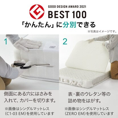 処分時に分解しやすい「かんたん分別」マットレス。