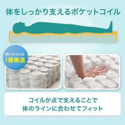 睡眠時に体の特定の場所に圧力がかからない優れた体圧分散性を発揮し、体の負担を少なくした心地よい眠りを実現します。