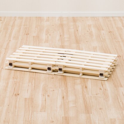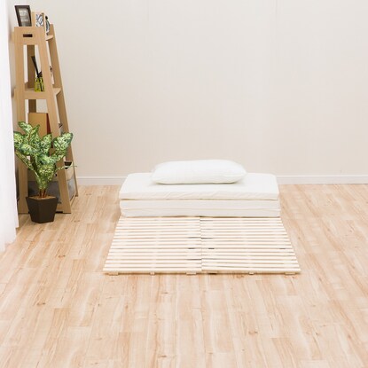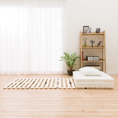 コンパクトに折りためる、通気性のよいすのこベッドです。ベッド用のマットレスを乗せても使用できます。