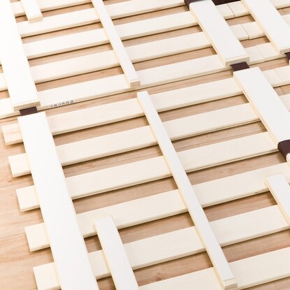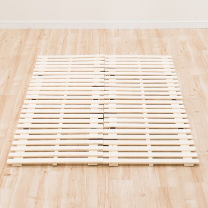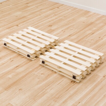 持ち運びに便利な2分割タイプ。分割しているすのこを接続できる連結ベルト付きです。