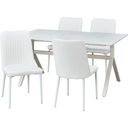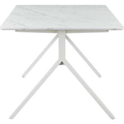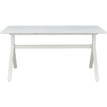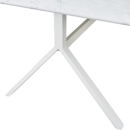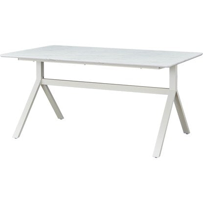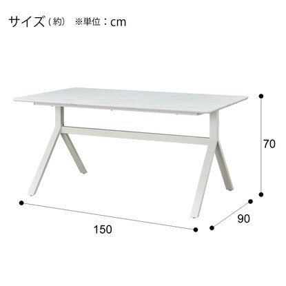 天板とマットなスチール脚のシンプルモダンなダイニングテーブル。