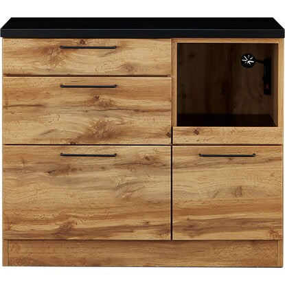 ⽊⽬とブラックカラーを組合せたモダンなデザインのキッチンカウンターです。