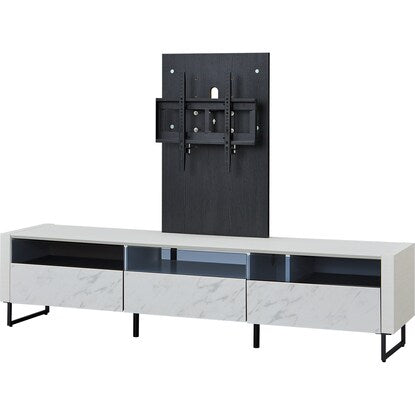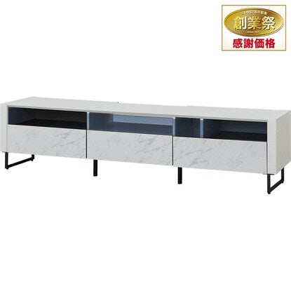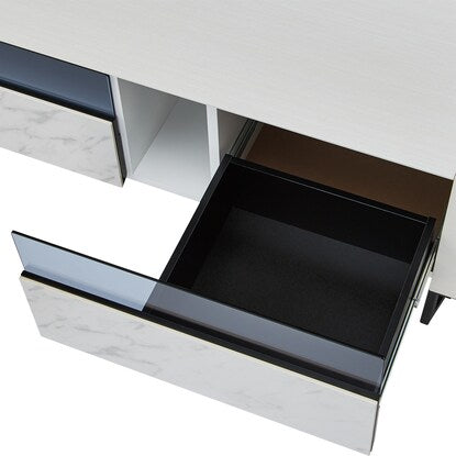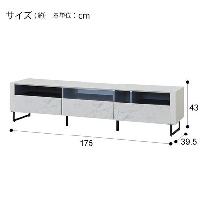 美しいセラミック素材を前板に使用した、重厚感のあるローボード。モダンスタイルのお部屋を演出する上質なデザインです。 前板は、重厚感・上質感のあるセラミック板。セラミックとは陶磁器などと同じ焼き物の一種で、キズや熱に強く、お手入れしやすい素材です。※カラーにより質感が異なります。 【グレー】 不規則な濃淡と表面は細かな凹凸があり、重厚感の高い仕上がり。 【ホワイト&ベージュ】 大理石調の模様で、表面は光沢感のある滑らかな仕上げ。3つの引き出しで収納力抜群です。ガラス越しに収納スペースがあり、ゲーム機やDVD機などを設置できます。背面が無いため内部に熱がこもりにくく、見苦しいコードは裏側に配線できます。ガラス板は二戸焼き処理(ヒートソーク)を行った強化ガラスで、リモコンの電波を遮りません。引出しはテレビ周辺に置きたいアイテムを纏めて収納するのに便利です。フルスライドレール仕様で、奥まで開いて出し入れしやすく、スムーズに開閉できます。コの字の脚は高さ13cm、脚付きなのでお掃除がラクラク。推奨TVサイズ:55インチ 引出内寸:約H50×D30×H11cm オープンスペース内寸:約W69×D36×H10cm 転倒防止対策として背板側に重量を加えています。※こちらは幅175cmサイズです。