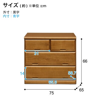 長引き出しは底板が抜けにくい、底板補強桟付き