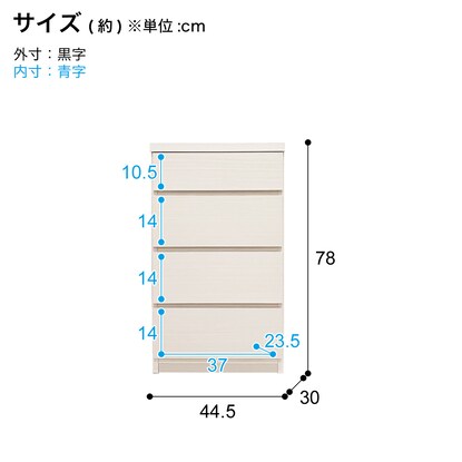 多サイズ薄型チェスト(幅44.5cm 4段 WH)