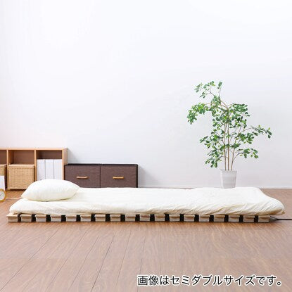 布団でもマットレスでも使用可能。一般的なマットレスとほぼ同じ大きさで、すのこ部分がマット下に納まります。