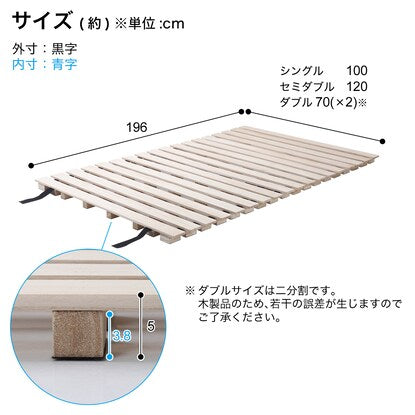シングル 高さ約5cm 丸めてしまえる桐すのこベッド