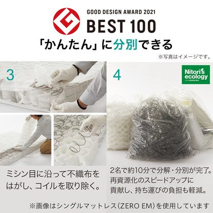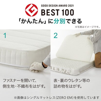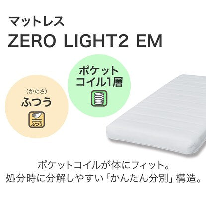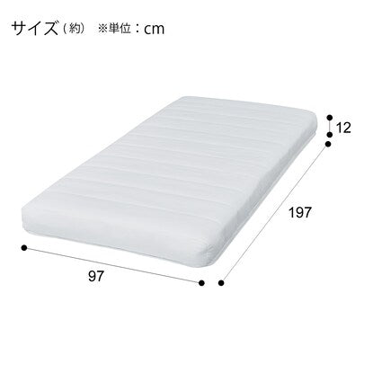 薄型ポケットコイルマットレス。薄型なので、チェストベッドなど高さのあるベッドフレームにもお使いいただけます。処分時に分解しやすい「かんたん分別」構造。コイルが点で体を支えることで、体のラインに合わせてフィット。睡眠時に体の特定の場所に圧力がかからない優れた体圧分散性を発揮します。ポケットコイル1層構造。抗菌防臭機能付き。ロール状に梱包されているので、玄関先での受け取りが簡単です。お部屋まで運びやすく、パッケージを開ければすぐに使えます。 ※本来の大きさを取り戻すのに2~3日かかる場合があります。一度開梱すると再圧縮はできません。こちらはシングルサイズです。※厚さ約12㎝(一番膨らんでいる箇所を計測しています)■表面生地 ポリエステル100% ニット生地 【詰め物】 表面:綿(10mm)、不織布、ソフトウレタン(15mm)、不織布 裏面:不織布、フェルト【スプリング数】 450個【スプリング線径】 線径1.8mm5巻き(コイル高100mm)