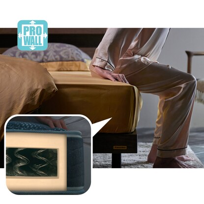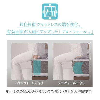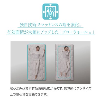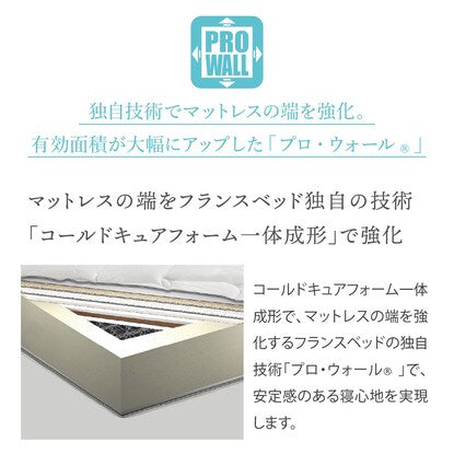 マットレスの端をフランスベッド独自の技術『コールドキュアフォーム一体成形』で強化。端が沈み込まず有効面積が広がるので、感覚的にワンサイズ上の寝心地を実感できます。