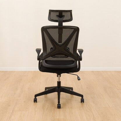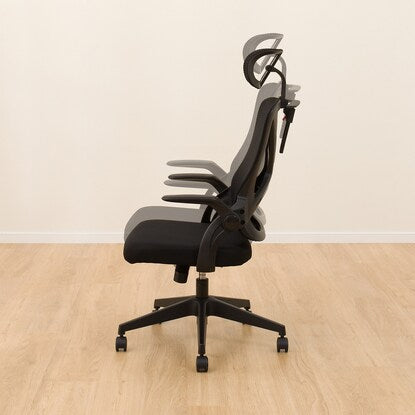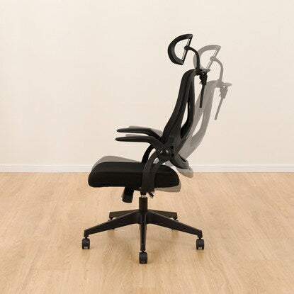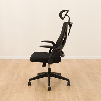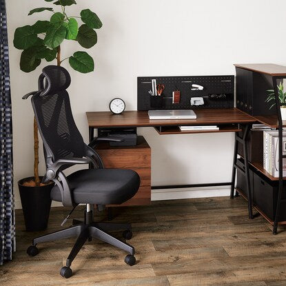 上着を掛けられるハンガー付きワークチェア。ヘッドレストは可動式で好きな角度に調整可能。重い頭を支える首は、お好みの角度に合わせられるヘッドレストに預けられます。ひじ掛けが可動式なので、未使用時は肘を跳ね上げ机にすっきり入れられます。樹脂製のランバーサポート付きで長時間使用も腰を支えてくれます。背もたれはロッキング機能付き。背もたれ部分はメッシュでムレずに快適な座り心地です。こちらは一般家庭向けの商品です。 業務使用を前提とした構造にはなっておりません。※イメージ画像の場合、使用している小物等は演出品です。