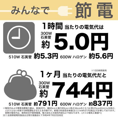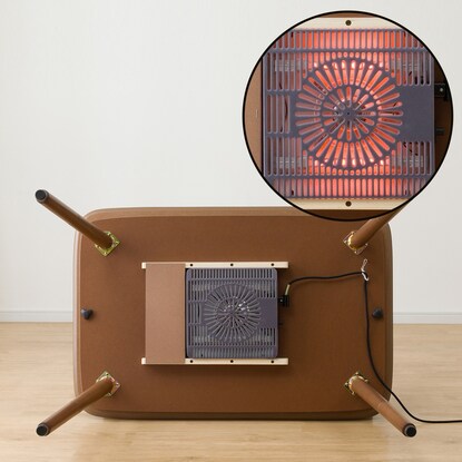 ・赤外線で温める石英管ヒーター。・便利なコードフック付き。コードを引っ掛けて、こたつの中がすっきりします。・手元スイッチ付き。・温度調整つまみ付き。ヒーター側面のつまみで、温度調整が可能です。