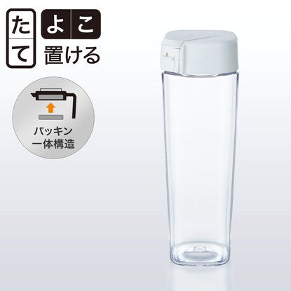 冷蔵庫内の棚に横置きする場合は、注ぎ口周囲に残った液体を注ぎきり、ふたや中栓をしっかり閉め、ロックがされていることを確認してください。ふた部が閉め切れていない状態やロックがされていない状態ですと、水漏れしますので、十分注意してください。
