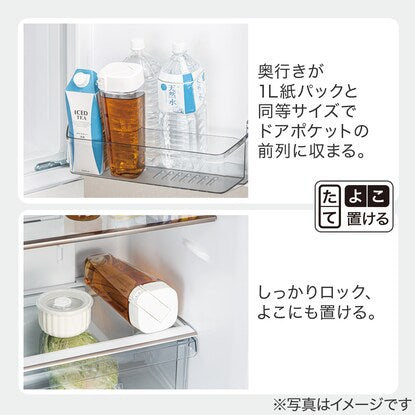 奥行が1L紙パックと同サイズなので、ドアポケットの前列に収まる