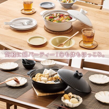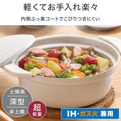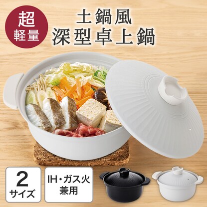 IH・ガス火 軽量土鍋風卓上鍋 深型 18cm アイボリー(KY041)