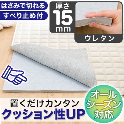 床暖房の種類によっては、ご使用いただけない場合があります。お使いの床暖房の取扱説明書をご確認ください。場合によっては製品・床材の変色など起こることがあります。長時間敷いたままでのご使用はさけてください。