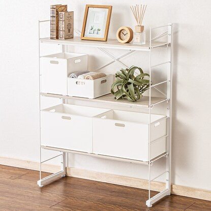 組み合わせて使いかたいろいろ! Nポルダにも連結可能 ※最大3台まで横連結可能 ※連結する際は、連結用パーツを併せてご確認ください ※Nポルダディープとは連結できません。幅82.5×奥行30.5×高さ108.7cm棚部:パーティクルボード パイプ部:スチール 樹脂部分:ポリプロピレン【重量(約)】 10.5kg【耐荷重(約)】 全体:30kg 棚1枚あたり:10kg ※棚板が増えても、1連あたりの最大耐荷重は変わりません。【取り扱い上のご注意】 本来の用途以外では使用しないでください。 床面がフローリングや畳などの場合、傷が付かないように注意してください。 屋内で使用してください。直射日光・冷暖房器具の風が直接あたらないところで使用してください。 湿気・水気の多い場所はさけ、通気性の良い場所で使用してください。ぬれた衣類などを直接置いたり、掛けたりしないでください。 耐荷重の範囲内で使用してください。荷重が一部に集中しないように均等に収納してください。 家電製品などを収納する場合は、家電製品の取扱説明書に従い、十分なすき間をあけてください。 天板、棚板の上に直接熱いものを置かないでください。 手や指をはさまないように注意してください。 移動は、収納しているものを取り除き、本体をしっかり持っておこなってください。引きずらないでください。 屋外(ベランダ含む)など、直射日光の当たる場所や、高温多湿になる場所では保管しないでください。 お子さまの手の届かない場所で保管してください。 セロハンテープやラベルなどを貼らないでください。 表面を水気の多いぞうきんなどでふかないでください。クレンザー、シンナー、ベンジン、アルコール、灯油などは使用しないでください。