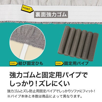 強力ゴムとズレ防止固定パイプでしっかりソファにフィット!※パイプ本体と本数は商品によって異なります。