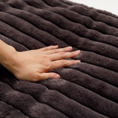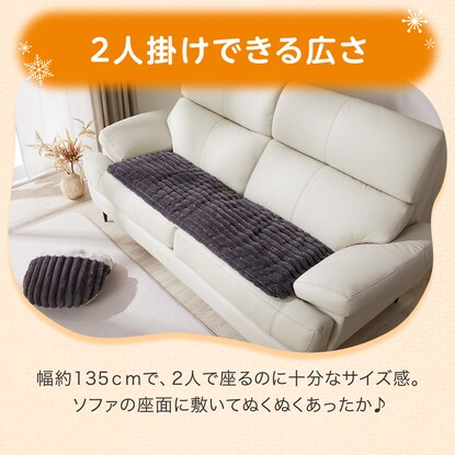幅約135cmで、2人で座るのに十分なサイズ感。ソファの座面に敷いてぬくぬくあったか♪