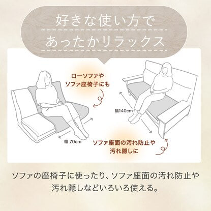 ソファの座椅子に使ったり、ソファ座面の汚れ防止や汚れ隠しなどいろいろ使える。