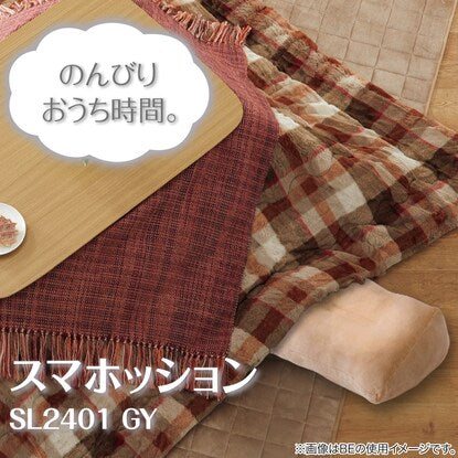 ひざ元に置けば、スマートフォン等の操作も手首やひじが自然とらくな姿勢に。横幅があるので、背もたれクッションとしても。