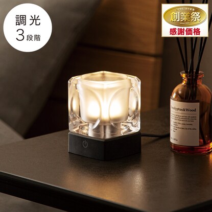 デスク周りやベッドサイドに 3段階の明るさ調節 コンパクトサイズで、おうちの中のちょっとした空間のアクセントにぴったり【仕様】 サイズ(約):幅7.3×奥行7.3×高さ9.8cm 質量(約):0.6kg コード長さ(約):1.5m 主な材質:ポリカーボネート、ガラス 定格入力電圧:AC100V 定格周波数:50Hz/60Hz 定格消費電力:1.9W 調光段数:3段階 全光束(約):120 lm LED光源寿命:40,000時間 ※LED光源寿命は、点灯しなくなるまでの総点灯時間または、全光束が点灯初期の70%に下がるまでの総点灯時間のいずれかの短い時間を推定したものです。 製品寿命を保証するものではありません。製品寿命は使用状況により異なります。 ※日本国内100V専用 (定格100V以外の電源では使用できません。)