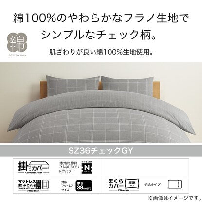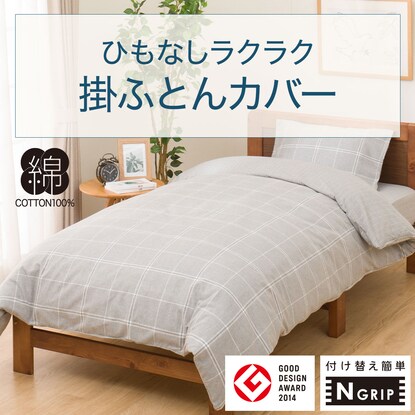 ひもなしラクラク掛け布団カバー シングル(Nグリップ SZ36 チェックGY S)